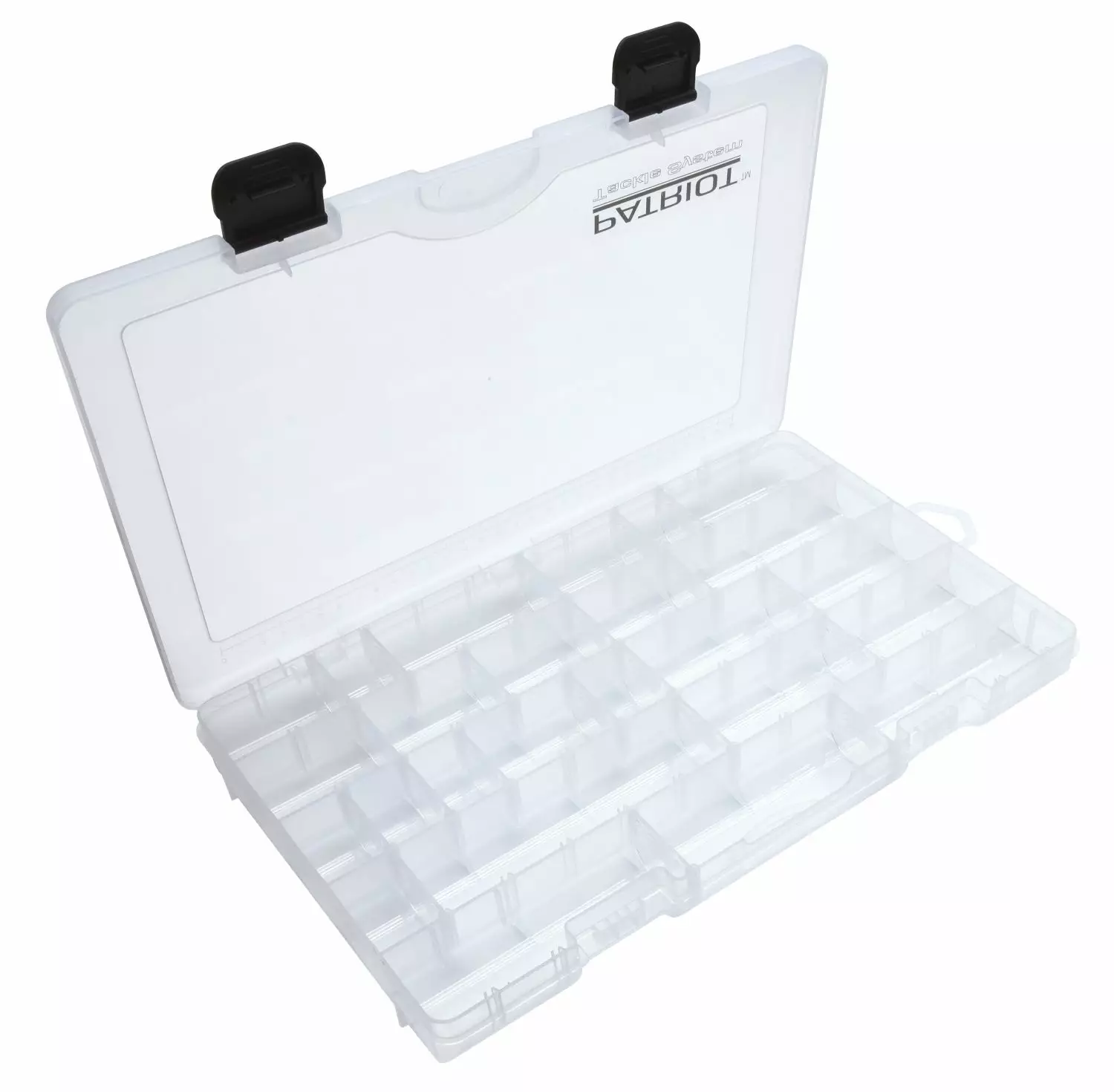 Patriot agnkasse #L lav er specielt designet til jigfiskeres behov, men den er også fremragende til opbevaring af andre agn. Dens tilpasningsdygtige skillevægge gør det muligt at organisere indholdet efter dine egne behov.