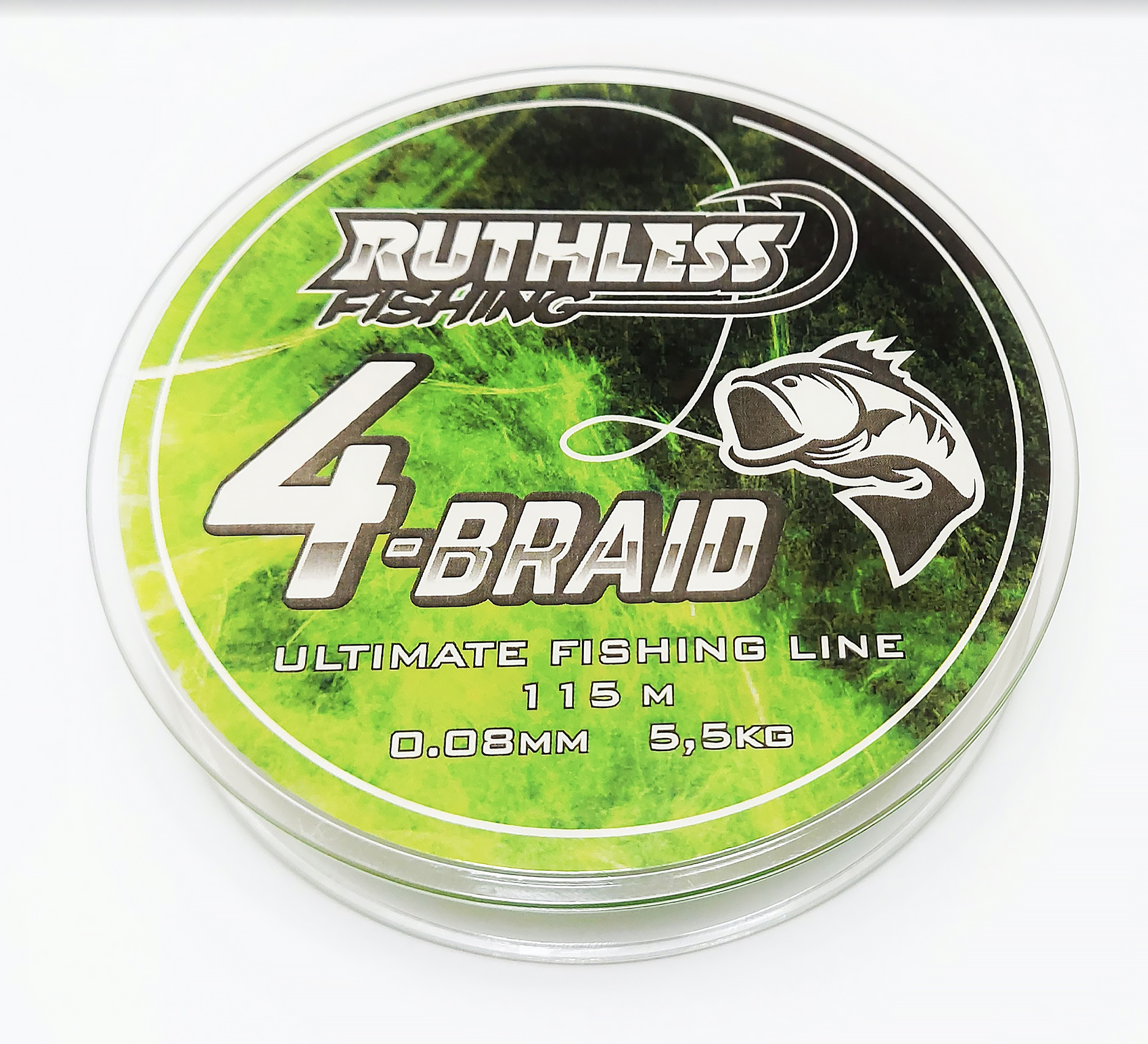 Ruthless 4-Braid er en flettet line lavet af fire PE-fibre, uden stræk, som tilbyder fremragende trækstyrke og slidstyrke takket være dens stærke konstruktion. Denne line er specielt designet til jigfiskeri og er velegnet til brug med både spinnehjul og multihjul. Kvaliteten af Ruthless-fletteliner er grundigt testet af Ruthless Fishing Team gennem praktisk fiskeri i hele fiskesæsonen 2019.