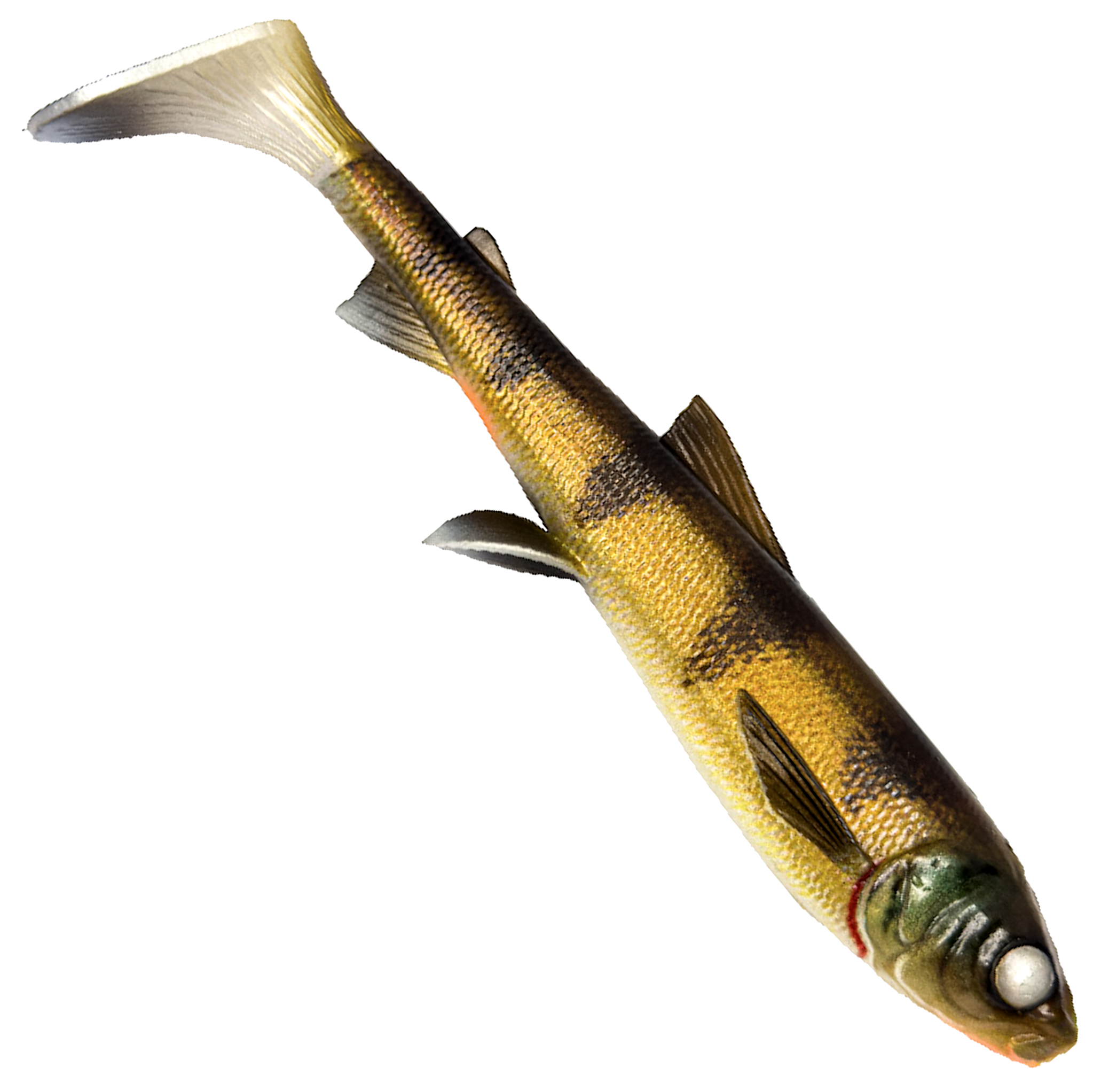 Savage Gear Whitefish er baseret på en præcis scanning af en rigtig fisk, hvilket gør denne shad utrolig detaljeret, men også detaljeret i sin funktion. Whitefish sparker effektivt med sin store paddehale, meget kraftigt, og agnen begynder også at svømme meget let, selv ved langsom indspinning. Materialet er PVC, og farverne på disse shads er utroligt flotte og præcise.