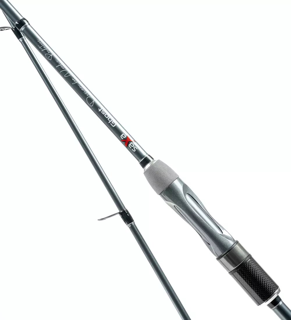 Saxa Ghost er en stangserie designet til den aktive sportsfisker, hvor der især er taget hensyn til moderne fisketeknikker i udviklingsarbejdet. Den stilfulde blågrå klinge, kvalitets stangringe samt de lysegrå EVA-håndtag med sølvdetaljer skaber et imponerende helhedsindtryk.