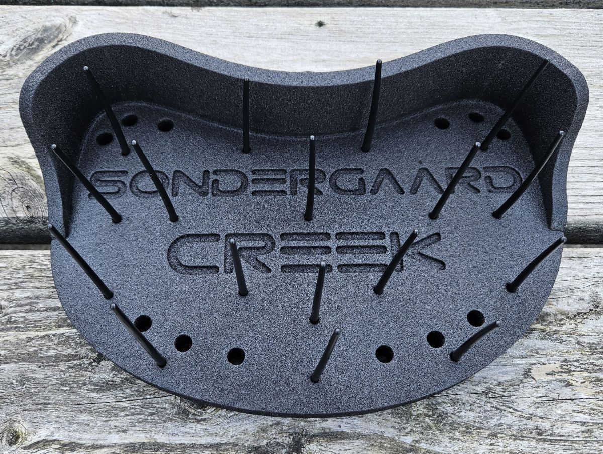Sondergaard's Creek Stripping Basket er sandsynligvis det letteste produkt i sin kategori på markedet og er lillebror til ECOastal kurven. Linenkurven er lavet af stærkt skum, som er fleksibelt og ikke absorberer vand. Produktets genialitet stopper ikke ved den lette vægt og det funktionelle design. Linenkurven fastgøres til et stramt, men elastisk bælte med en stærk velcro, så kurven nemt kan fjernes uden at løsne bæltet, og skummet har også en plads til at hvile stangen, for eksempel når du frigiver og/eller fotograferer en fisk. Produktet er designet og fremstillet i Danmark og har gennemgået hardcore fluefiskeres produkttestning før sin endelige form. Denne mindre version er ideel, hvis du er vant til f.eks. Flexi-Stripperen.