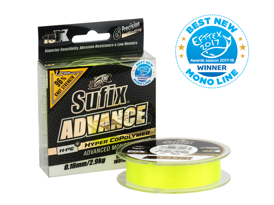 - Sufix Advance er fleksibel, ekstremt slidstærk og lavhukommende, hvilket gør den behagelig at bruge (normalt er slidstærke monofilamentliner hårde, stive og tilbøjelige til at krølle).
