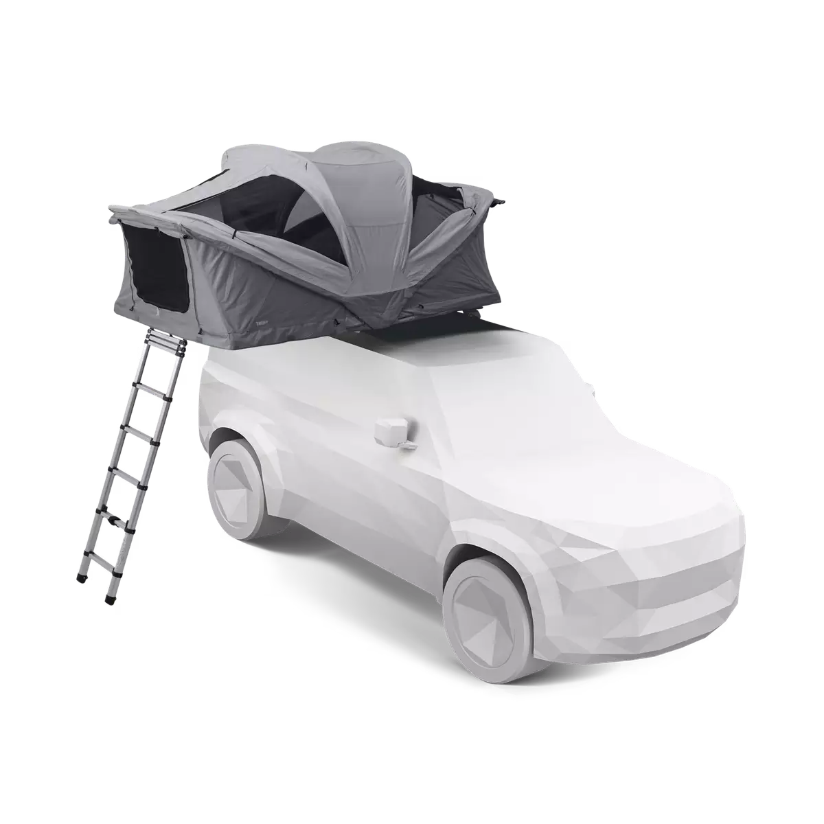 Teltets rummelige indre og store panoramavinduer bringer naturen tæt på. Den udadrettede indgang maksimerer pladsen til både søvn og opbevaring. Opsætningen af teltet er hurtig og ubesværet, og det kan monteres på bilens tag på få minutter takket være de innovative monteringsbeslag.