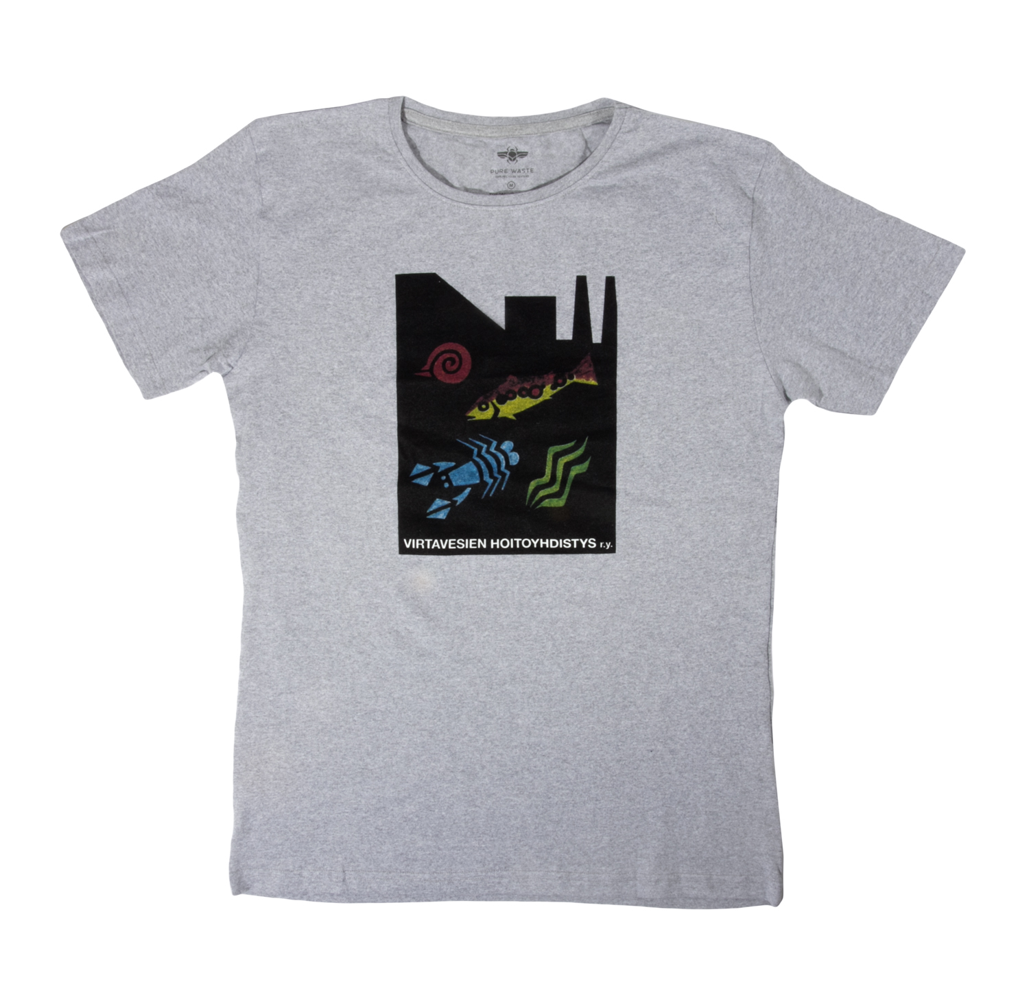 Virtuelle Vandløbsforenings støtte t-shirt er en kvalitets t-shirt fremstillet af det finske mærke Pure Waste. T-shirten kan købes hos Ruoto, og alle indtægter går til Virtuelle Vandløbsforeningens arbejde. VIRHO planlægger og udfører mange restaureringsprojekter af små vandløb ved hjælp af frivilligt arbejde og støtte. Besøg deres hjemmeside for at lære mere om deres arbejde og deltag i projekterne!